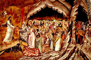 | Andrea da Firenze, La descente aux enfers. Jésus vient sauver les âmes saintes enfermées dans le Shéol pour les conduire au Ciel par sa Résurrection glorieuse le jour de Pâques. |